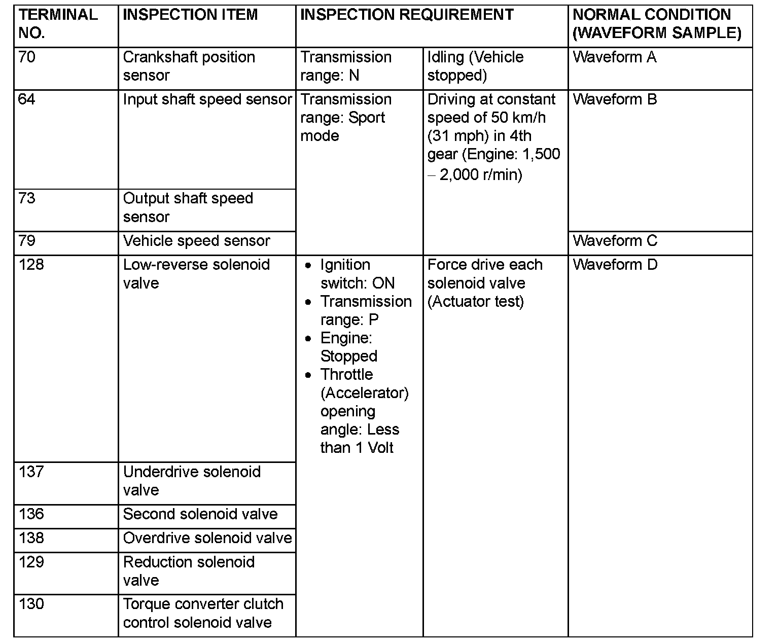 INSPECTION PROCEDURE USING AN OSCILLOSCOPE: