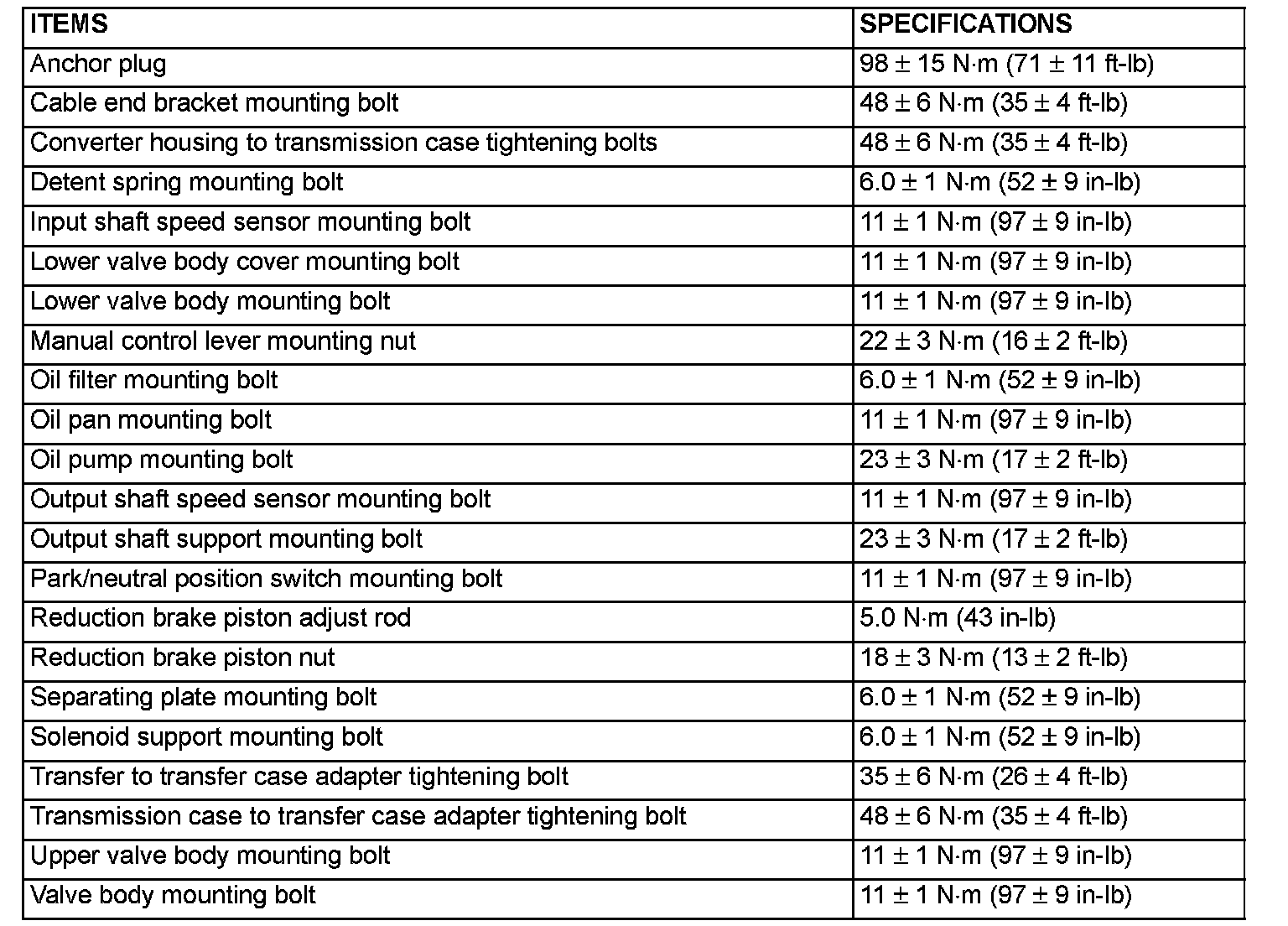Overhaul Fastener Tightening Specifications
