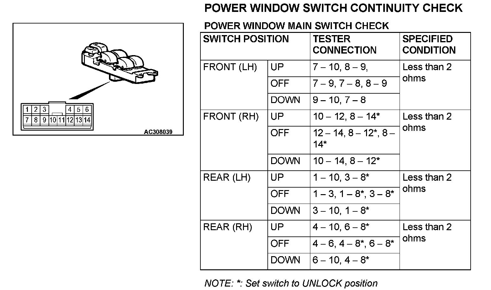 Power Window Main Switch Check