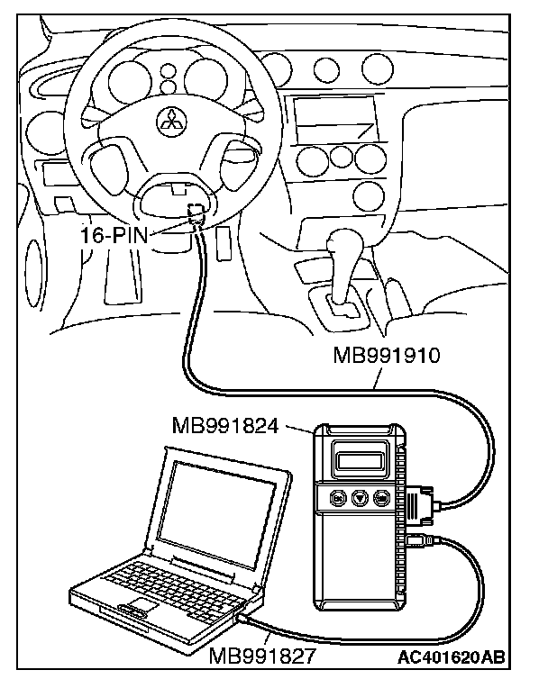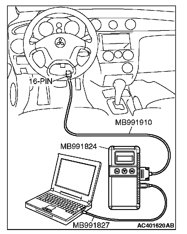 1. Connect scan tool MB991958 to the 16-pin data link connector.