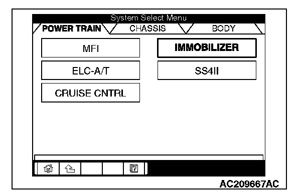 5. Choose "IMMOBILIZER" from the "POWER TRAIN" tab.