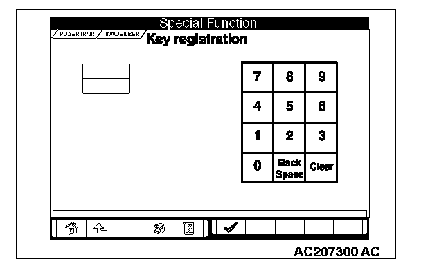 8. Enter the vehicle's password (secret code) on the "Key registration" screen, and then click the check mark icon. Follow the prompts on the screen to insert key(s) into the ignition switch to begin key registration.