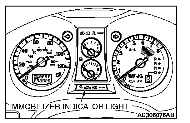 If an attempt is made to start the engine with an unregistered ignition key, cranking occurs, but fuel supply is cut off to disable the engine. In approx. 10 seconds, the theft-alarm indicator will blink for approx. 30 seconds.