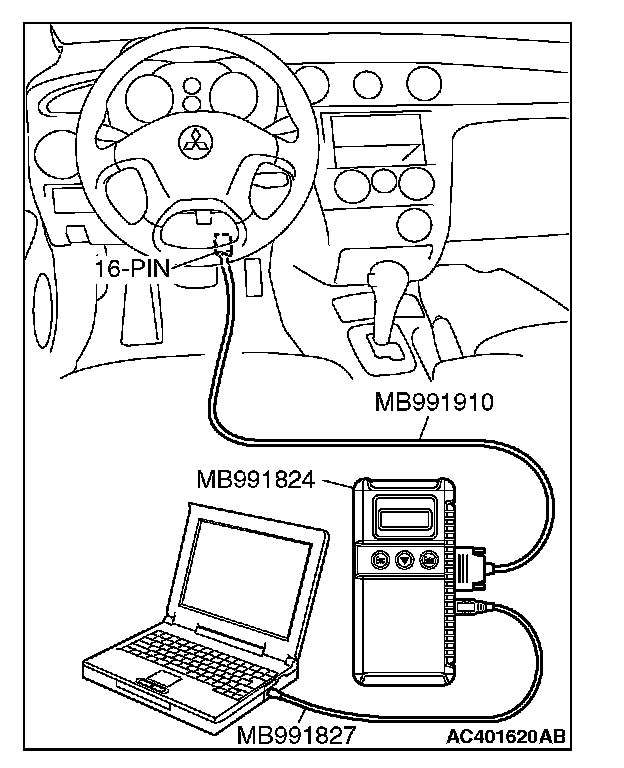 1. Connect scan tool MB991958 to the data link connector.