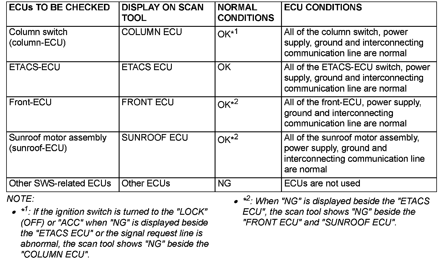 HOW TO CHECK ECUS1. Use the scan tool and the SWS monitor kit to check ECUs. (Refer to MUT-III User's Manual)