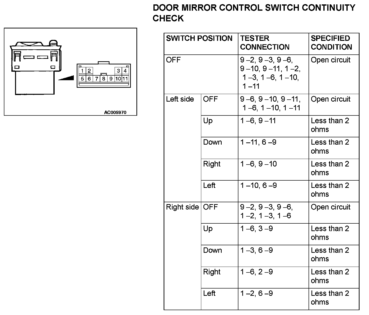 DOOR MIRROR CONTROL SWITCH CONTINUITY CHECK