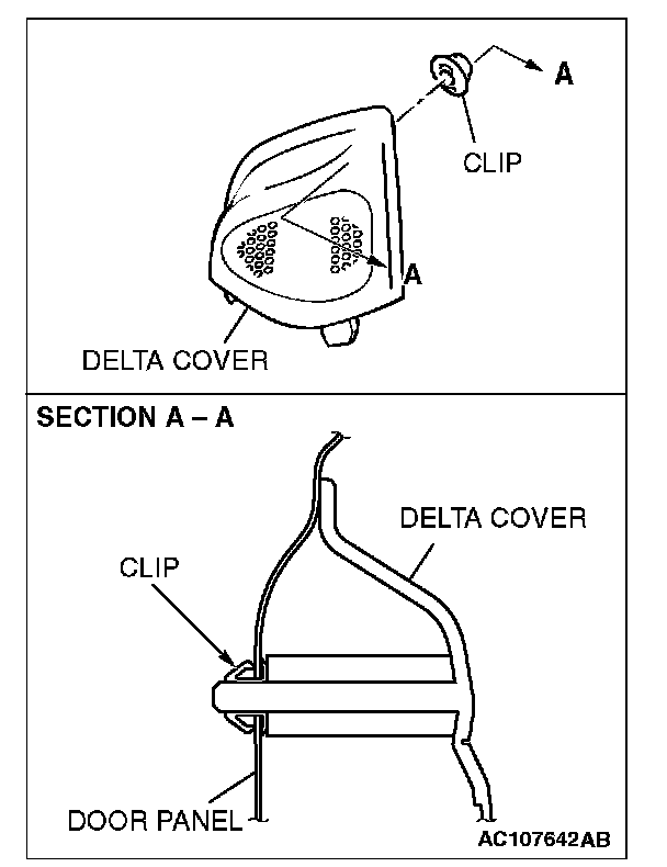 CAUTION: If the delta cover is placed with the clip on the door panel, the clip may be pushed into the door panel and fall off. Thus, special care is necessary.