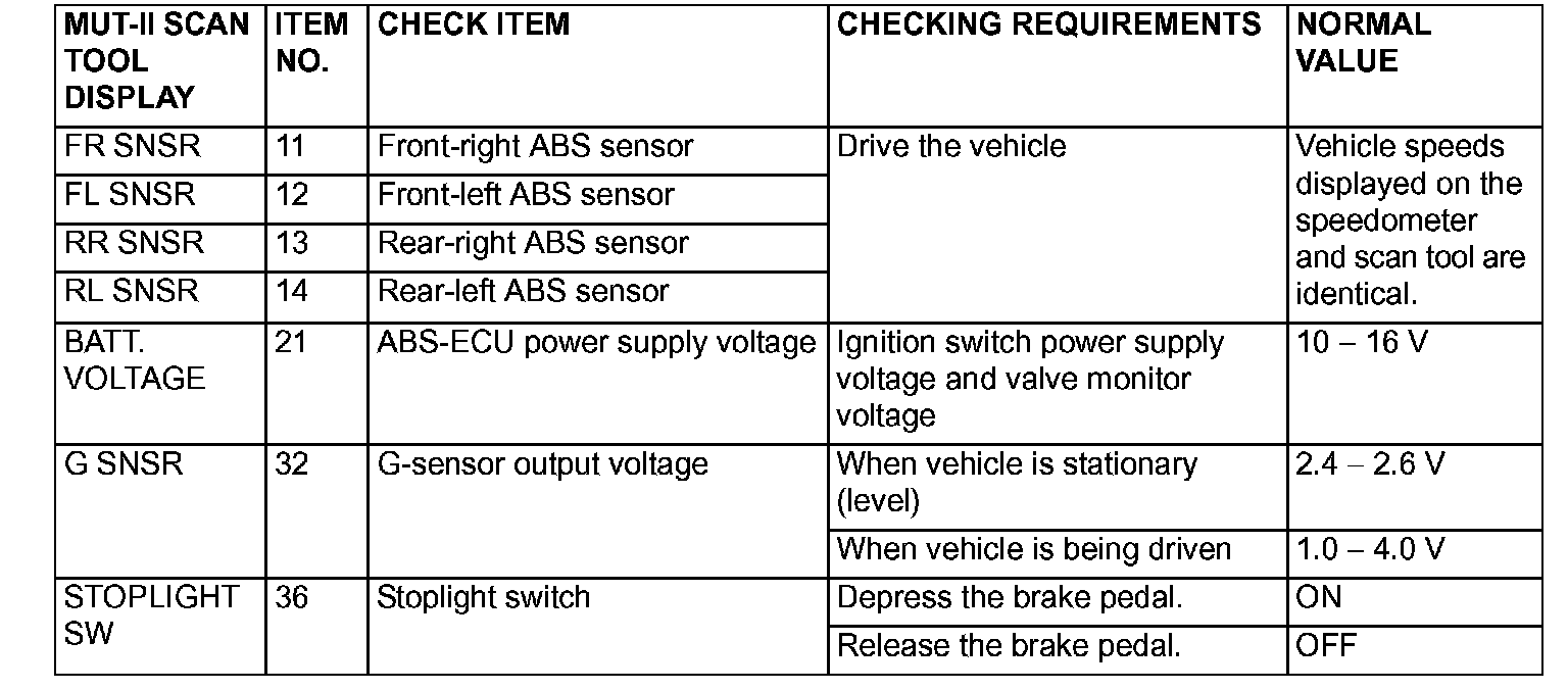 The following items can be read by the scan tool from the ABS-ECU input data.