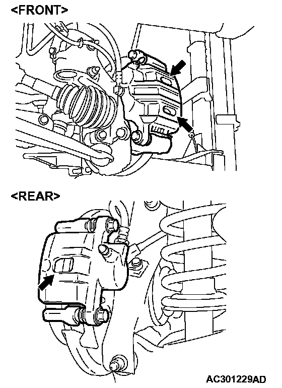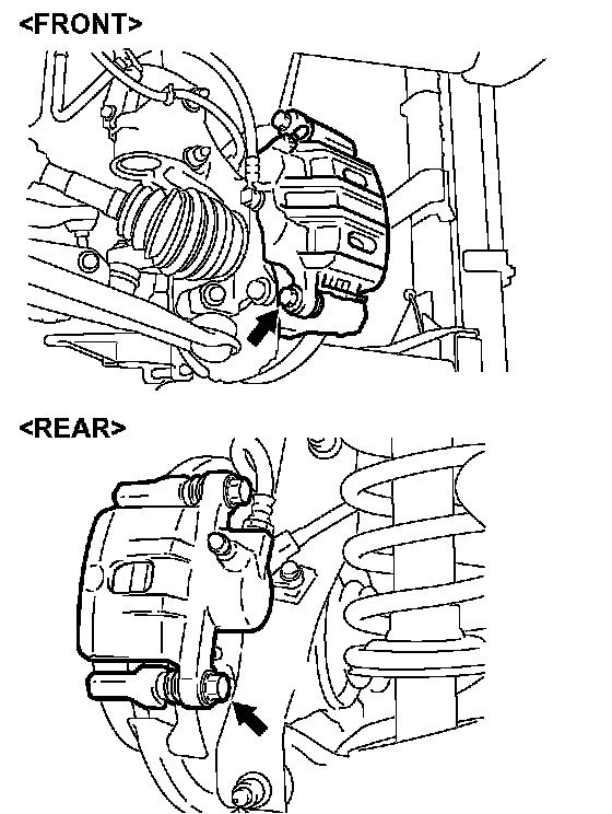 ^ Whenever a pad must be replaced, replace both LH and RH wheel pads as a set to prevent the vehicle from pulling to one side when braking.