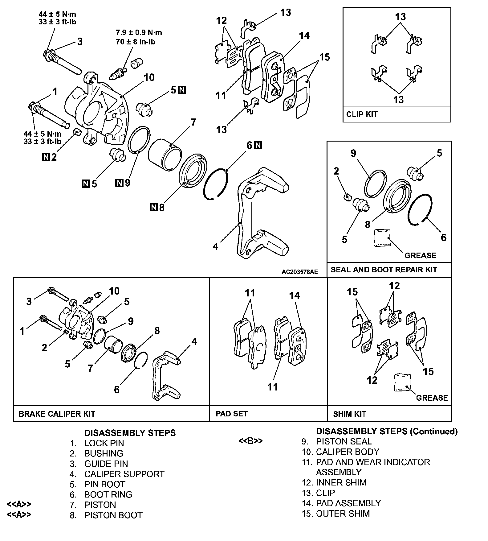 ^ Check the pad for damage or adhesion of grease, check the backing metal for damage.