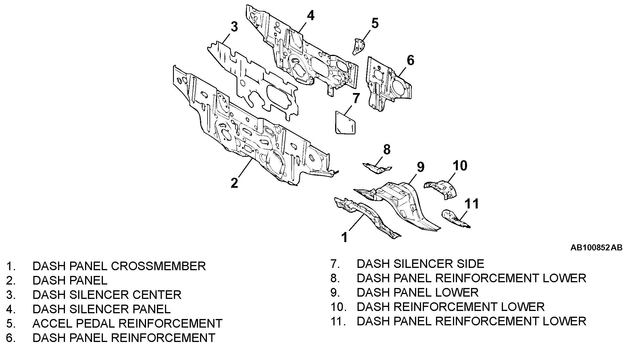 DASH PANEL- Floor deformation upon impact was reduced by featuring a thicker dash panel lower steel sheet and adding a dash panel cross member to improve safety upon impact.