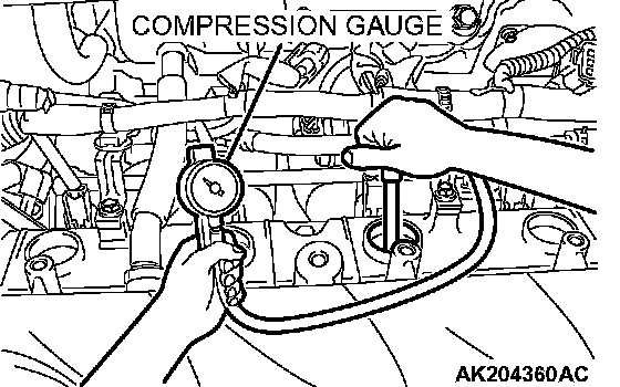 6. Crank the engine with the throttle valve fully open and measure the compression pressure.