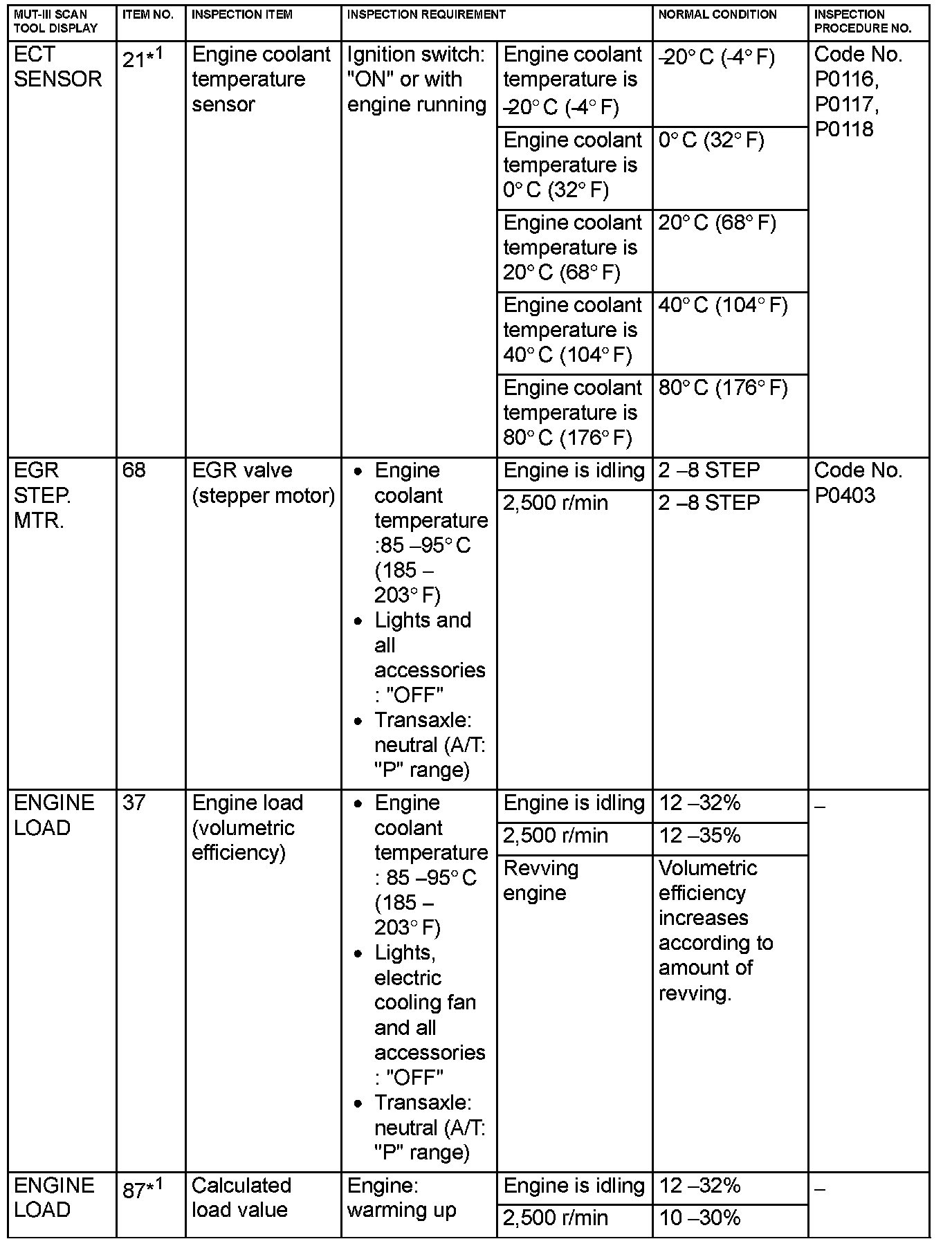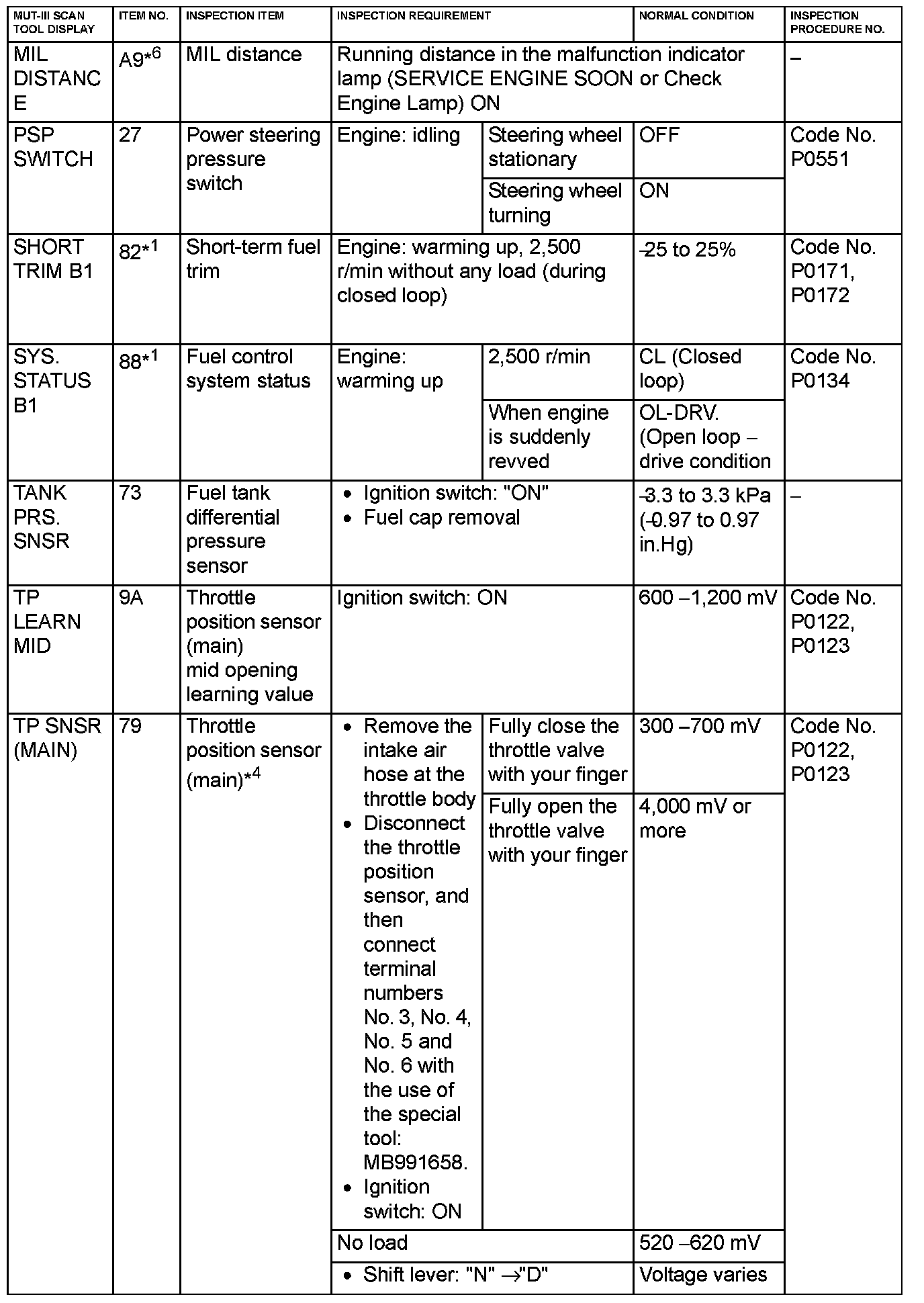 NOTE: *5: In a new vehicle [driven approximately 500 km (311 mile) or less], the mass airflow sensor output value is sometimes 10% higher than the standard value.