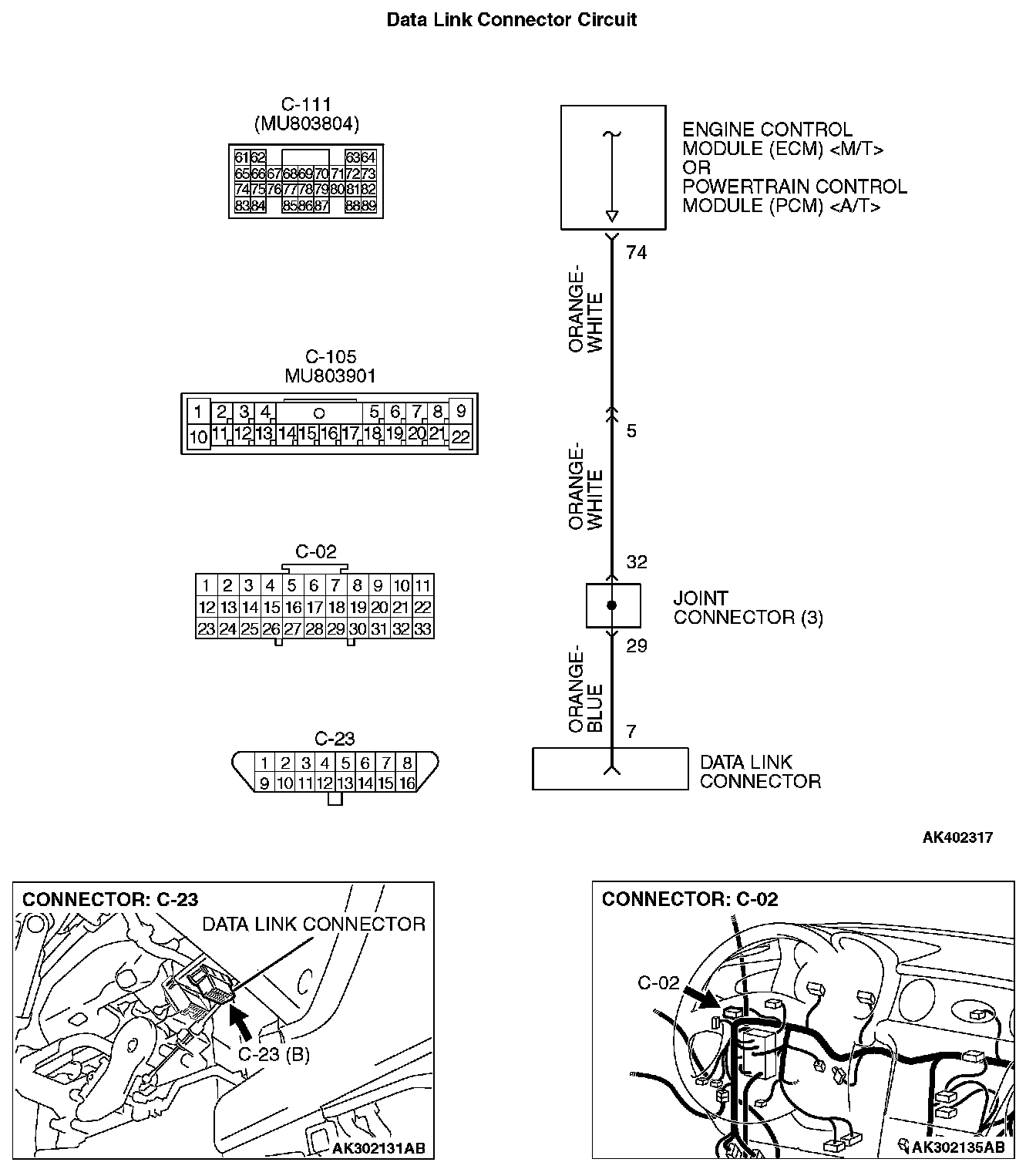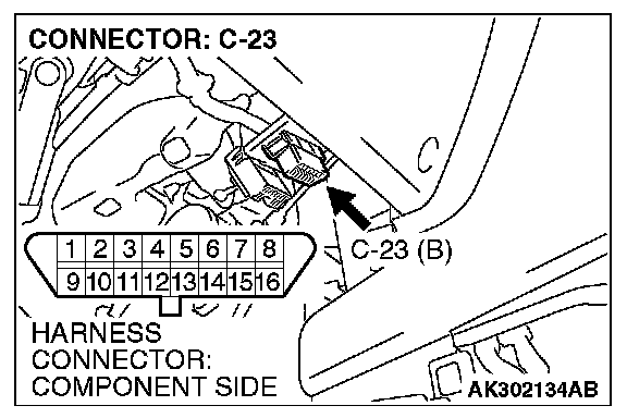 STEP 2. Check for open circuit, short circuit to ground and harness damage between data link connector C-23 (terminal No. 7) and ECM