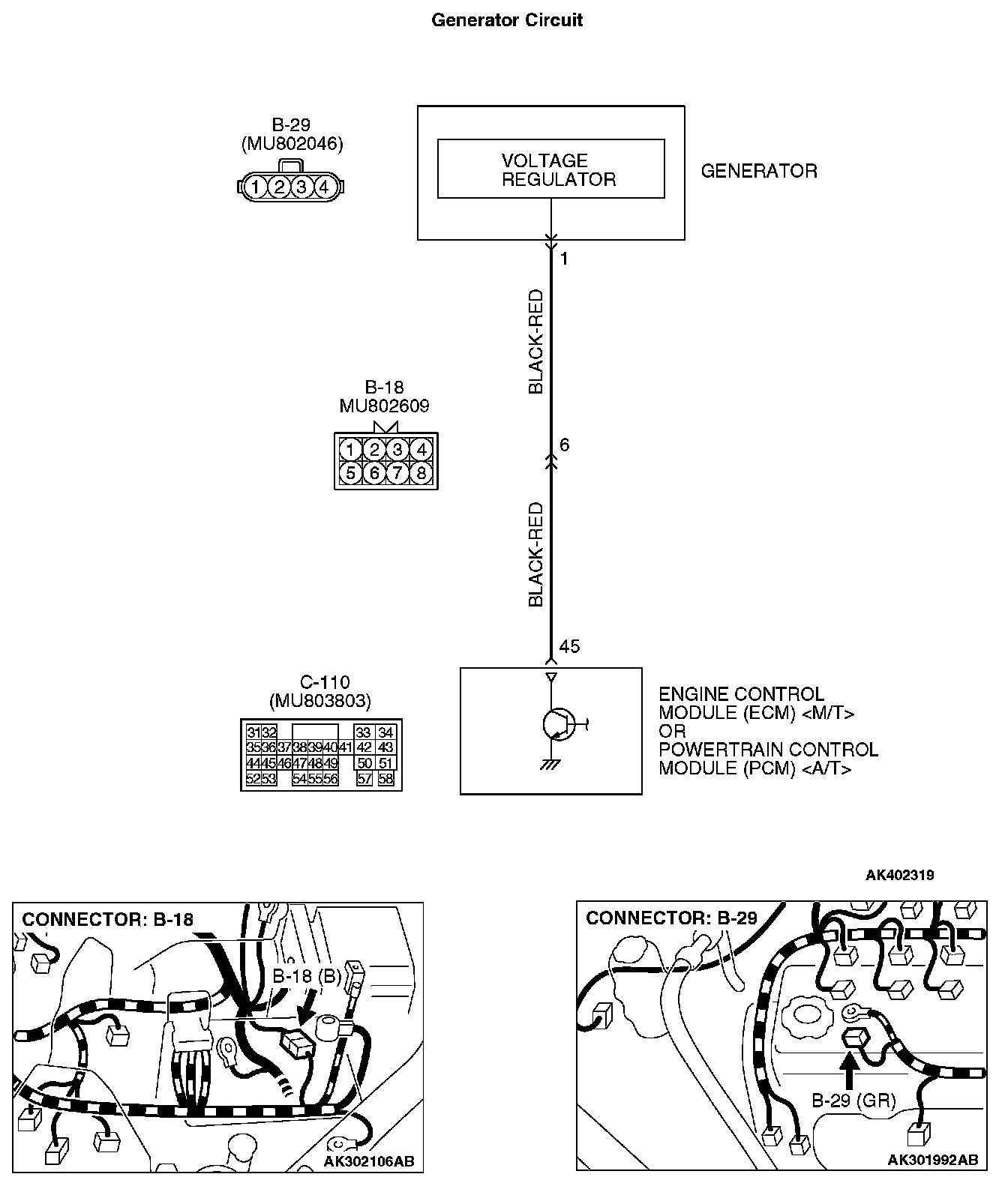 STEP 3. Check harness connector B-29 at generator connector for damage.
