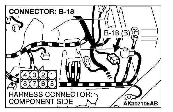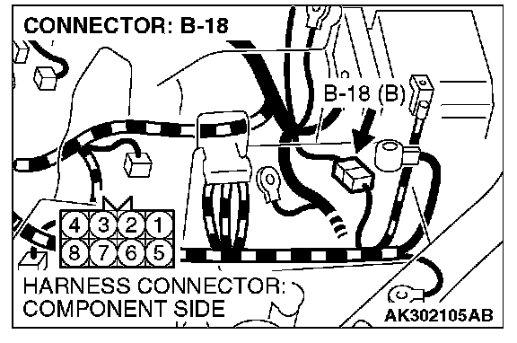 NOTE: Check harness after checking intermediate connector B-18. If intermediate connector is damaged, repair or replace it. Then check that, the malfunction is eliminated.