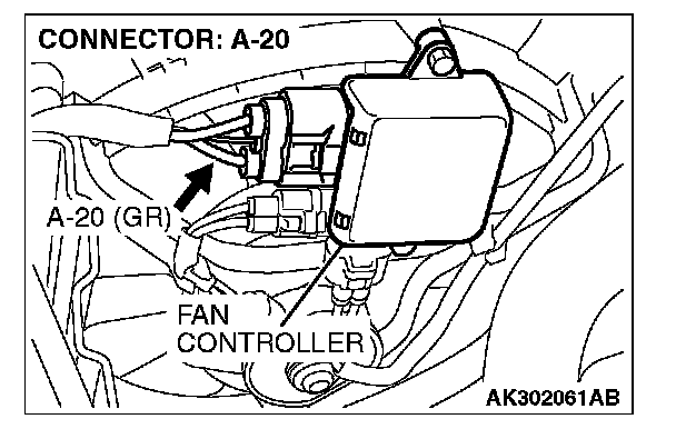 STEP 3. Check for open circuit and short circuit to ground and harness damage between fan controller A-20 (terminal No. 2) and ECM