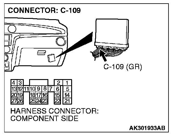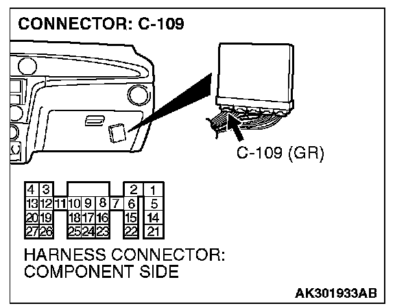 1. Disconnect the C-109 and measure at the harness side.