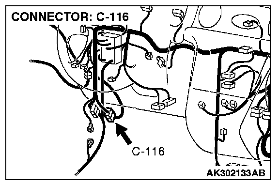 NO: Check harness connectors C-116 and C-202 at intermediate connector for damage, and repair or replace as required. If intermediate connectors are in good condition, repair harness wire between relay box and fuel pump relay 1 connector C-215 (terminal No. 4) because of open circuit. Then confirm that the malfunction symptom is eliminated.