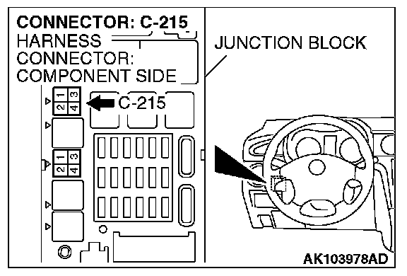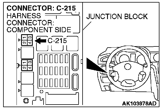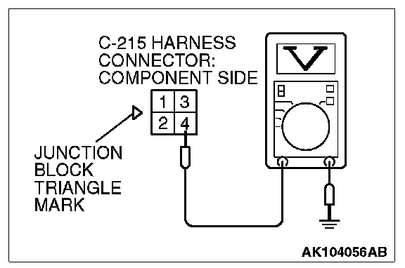 STEP 4. Measure the power supply voltage at fuel pump relay 1 harness side connector C-215.