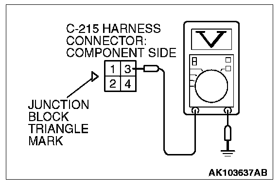 STEP 5. Measure the power supply voltage at fuel pump relay 1 harness side connector C-215.