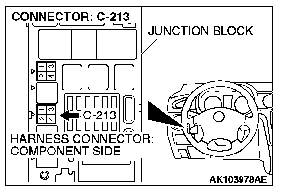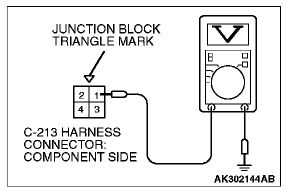 STEP 7. Measure the power supply voltage at fuel pump relay 2 harness side connector C-213.