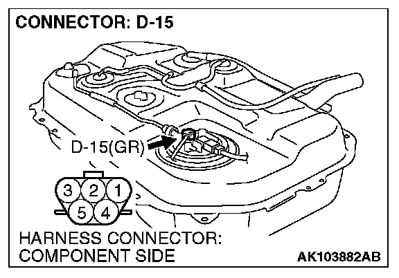 STEP 11. Check the continuity at fuel pump harness side connector D-15.
