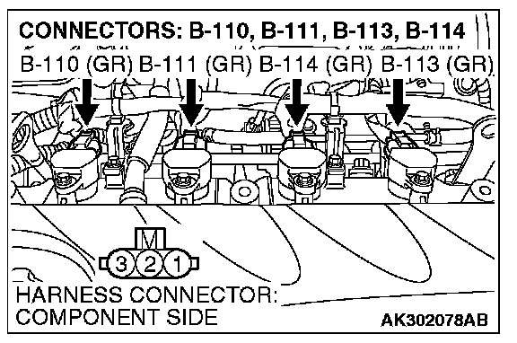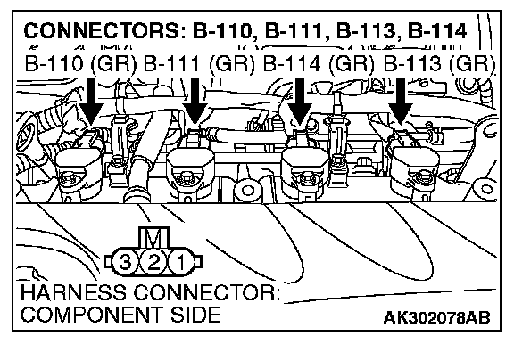 STEP 5. Check the circuit at ignition coil harness side connector B-110, B-111, B-113 and B-114.