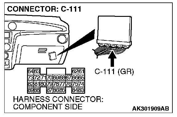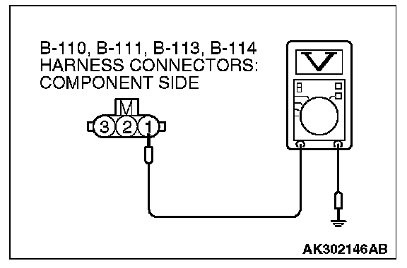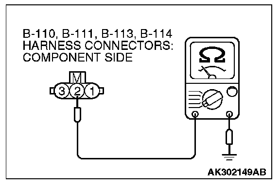 1. Disconnect the connector B-110, B-111, B-113 and B-114 and measure at the harness side.
