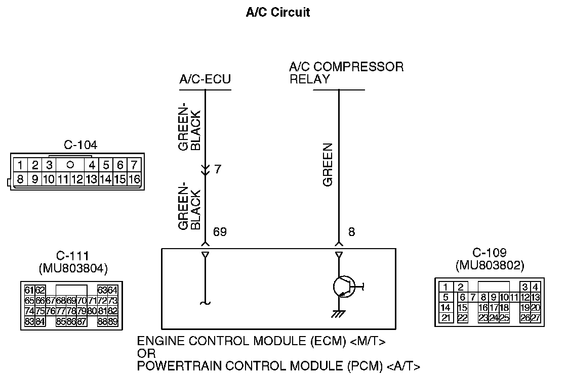 - When the A/C is "ON", the battery positive voltage is applied on the ECM