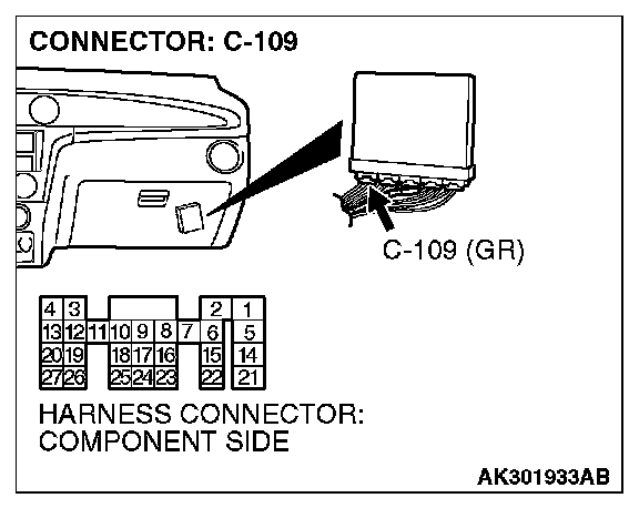 1. Disconnect the connector C-109 and measure at the harness side.