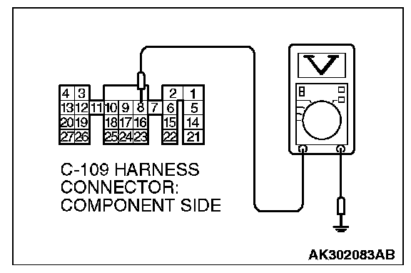 3. Measure the voltage between terminal No. 8 and ground.