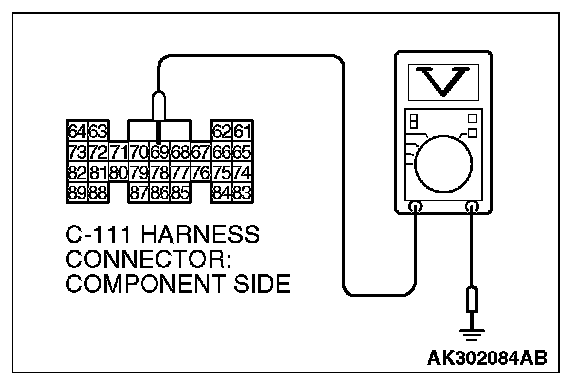 3. Measure the voltage between terminal No. 69 and ground.