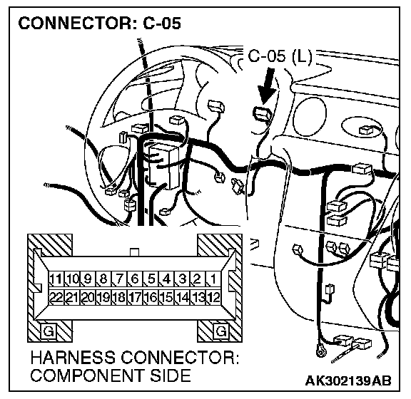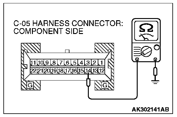 STEP 2. Check the continuity at combination meter harness side connector C-05.