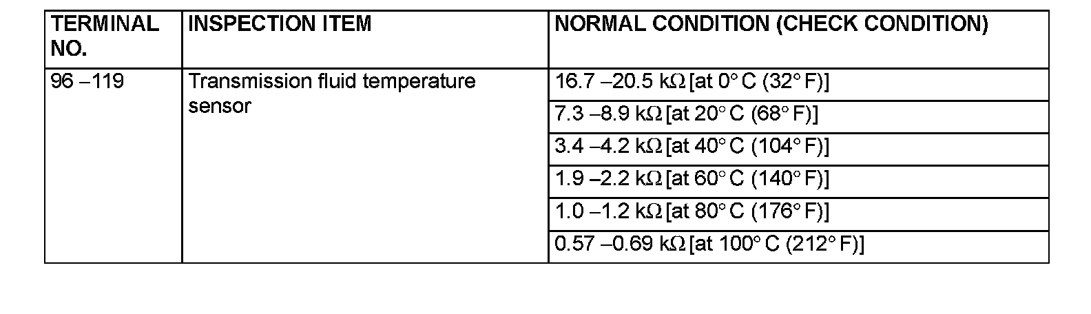 PCM TERMINAL RESISTANCE AND CONTINUITY INSPECTION CHART: