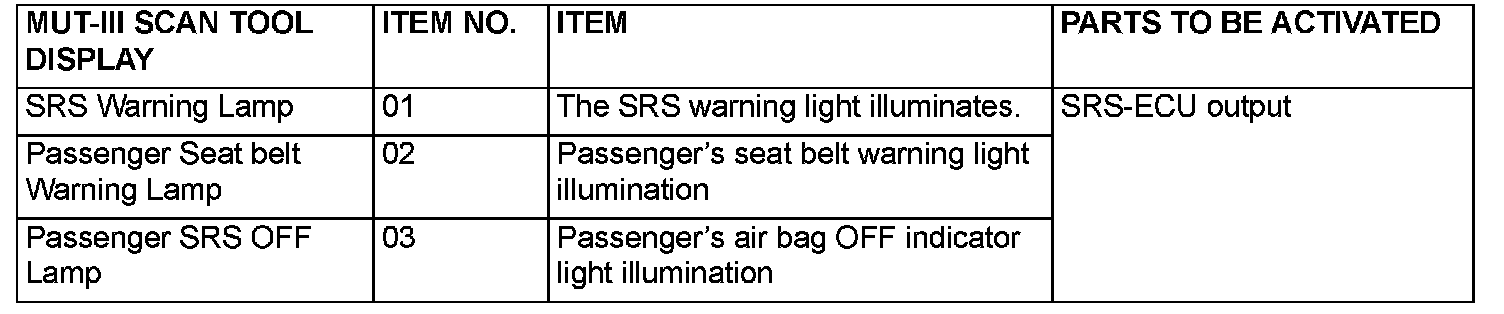 Actuator Test Reference Table:
