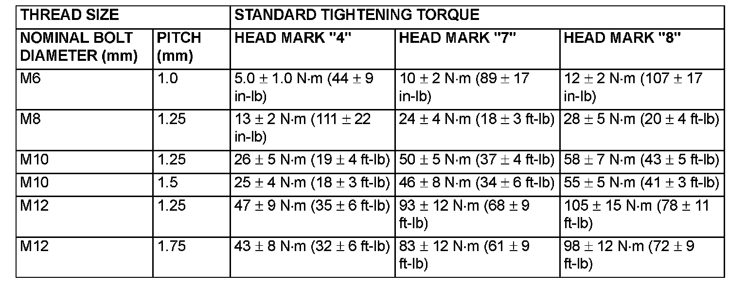 TIGHTENING TORQUEEach torque value in the table is a standard value for tightening under the following conditions.