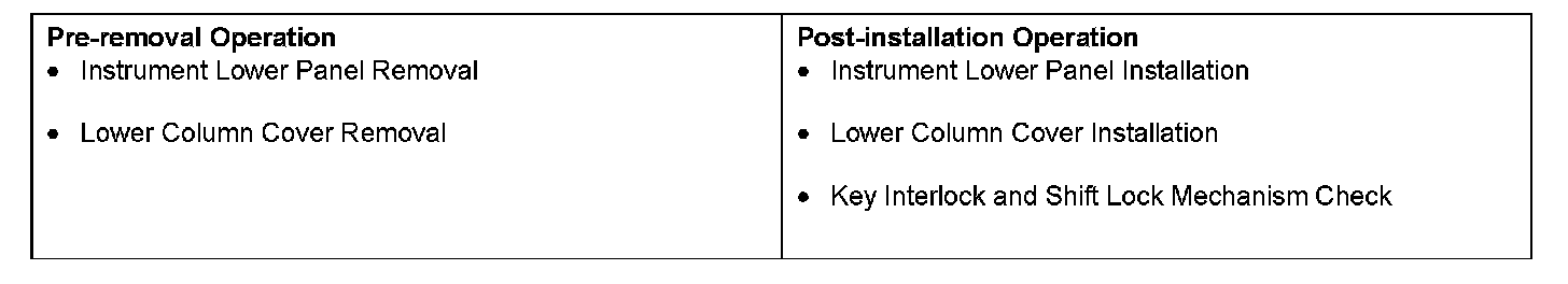 A/T KEY INTERLOCK AND SHIFT LOCK MECHANISMSREMOVAL AND INSTALLATION