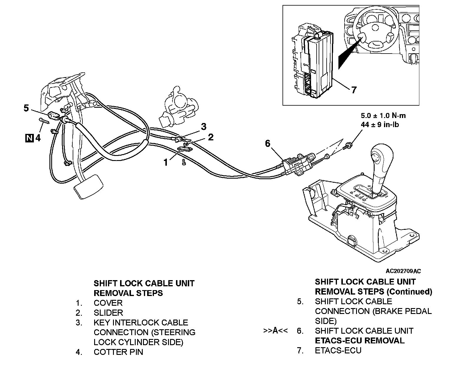 >>A<< SHIFT LOCK CABLE UNIT INSTALLATION