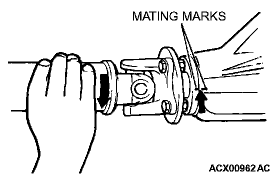 3. Turn the propeller shaft clockwise as far as it will go. Make the mating marks on the dust cover of the companion flange and on the differential carrier.