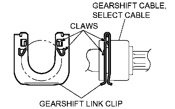CAUTION: Insert thoroughly the gearshift link clip, shift cable and select cable until they click in place.