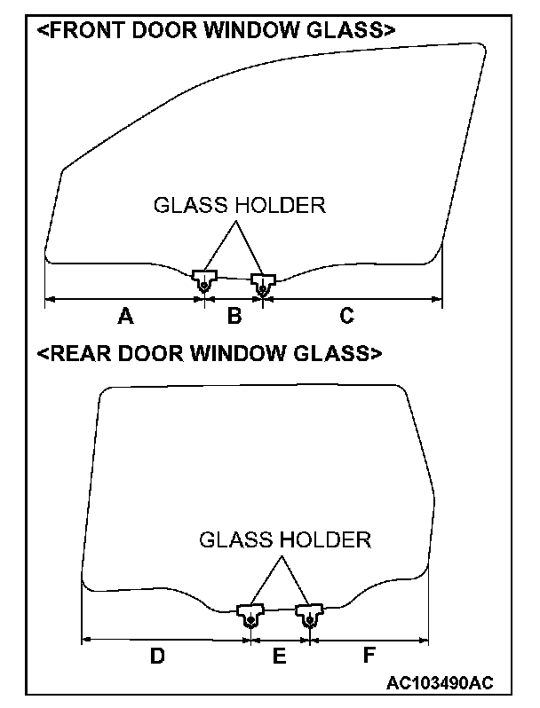 CAUTION: If tinting film is adhered to the door window glass, attach special tool MB990480 to the outside of the glass to prevent the film from peeling off.