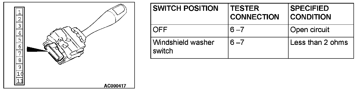 Windshield Washer Switch: Testing and Inspection