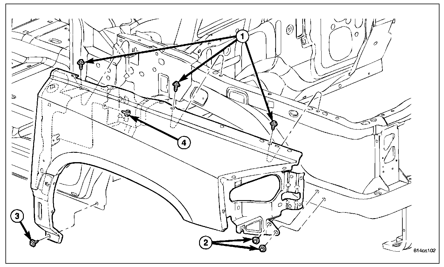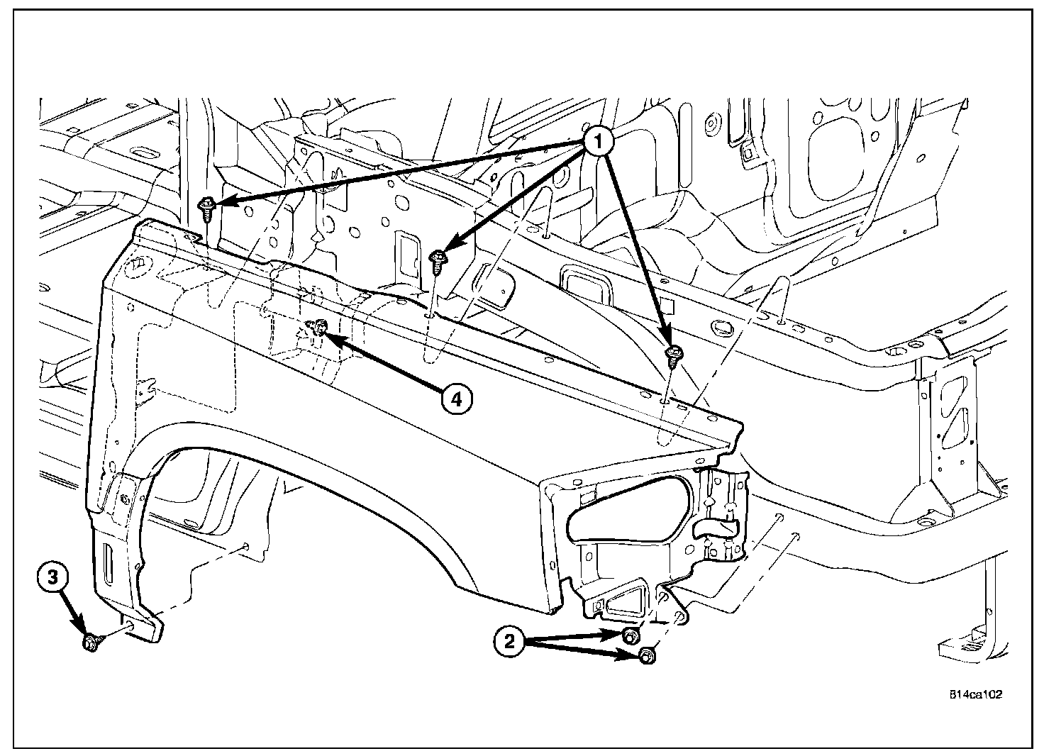 NOTE: Tighten the fender fasteners only after all fasteners are installed loosely and fender is adjusted for gap and flush.