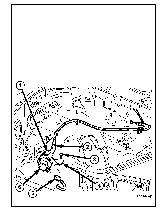 The speed control servo (6) is located in the engine compartment and is attached to the right inner fender.