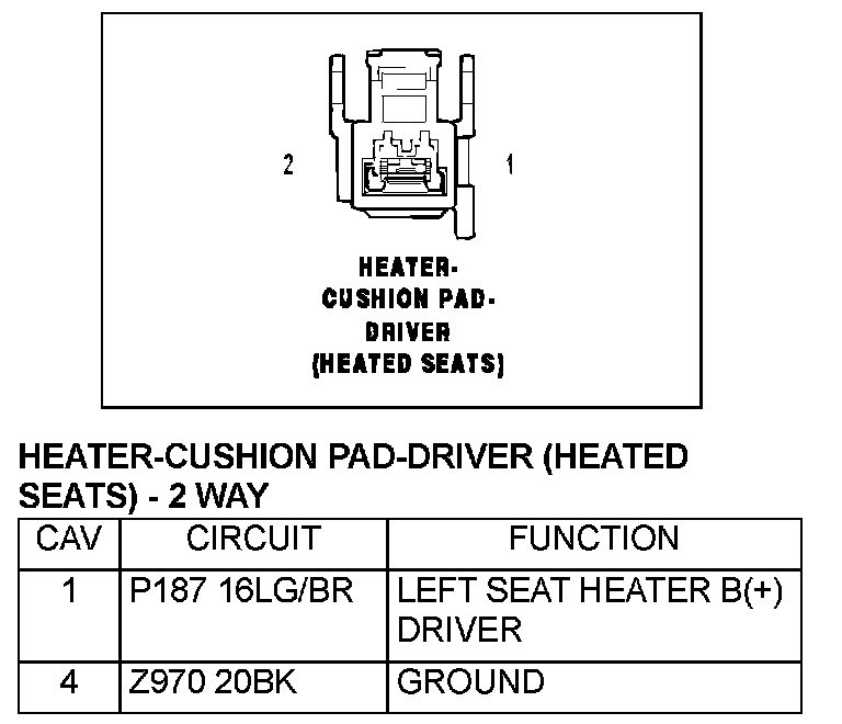 Heater-Cushion Pad-Driver (Heated Seats)-2 Way: