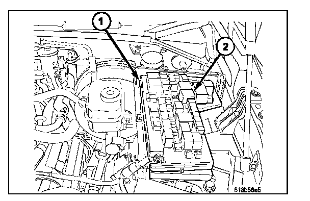 1. Position the A/C clutch relay (2) into the proper receptacle of the IPM (1).