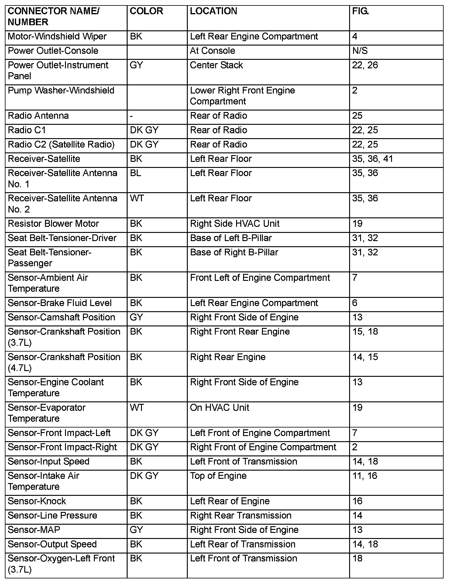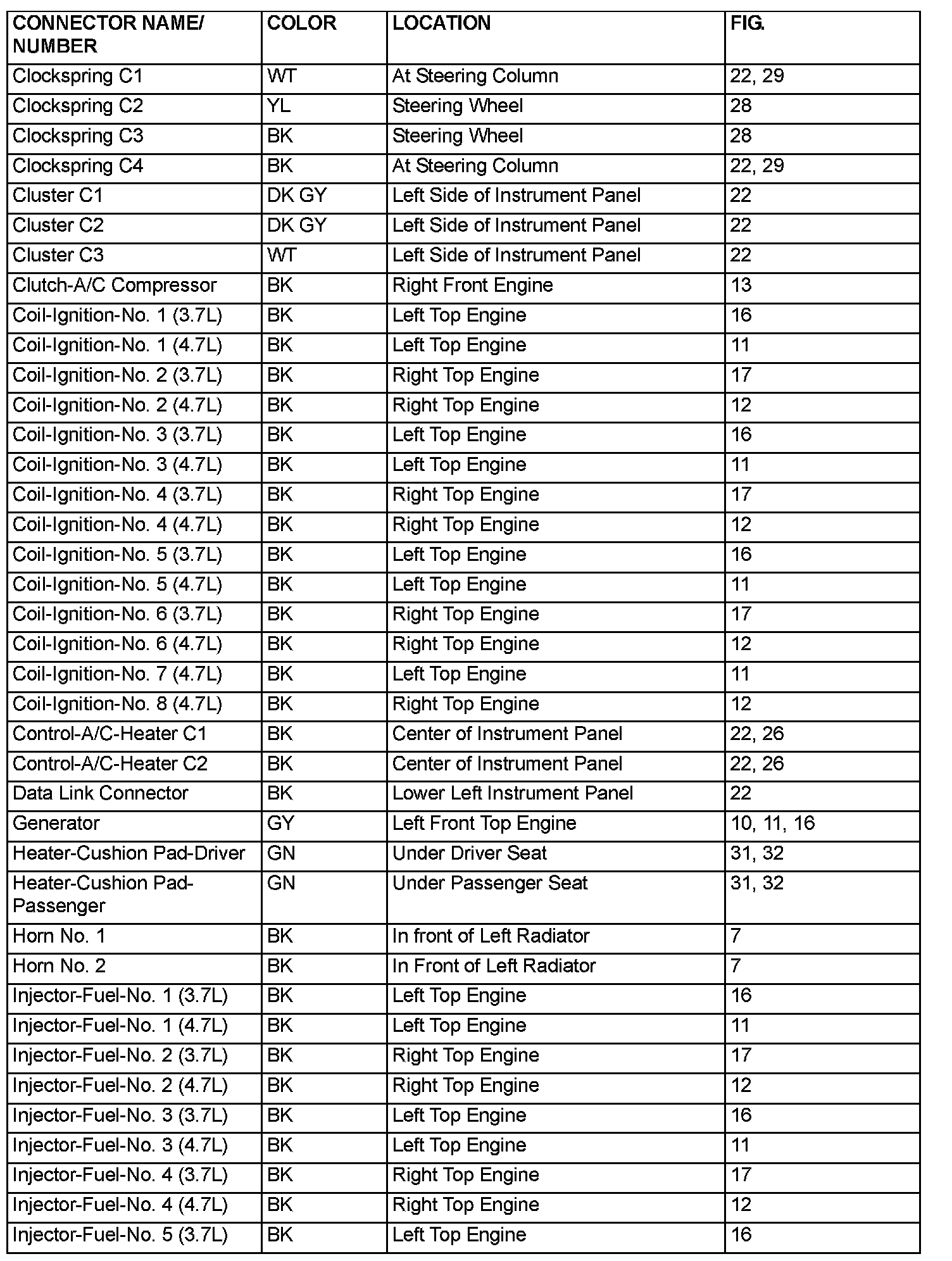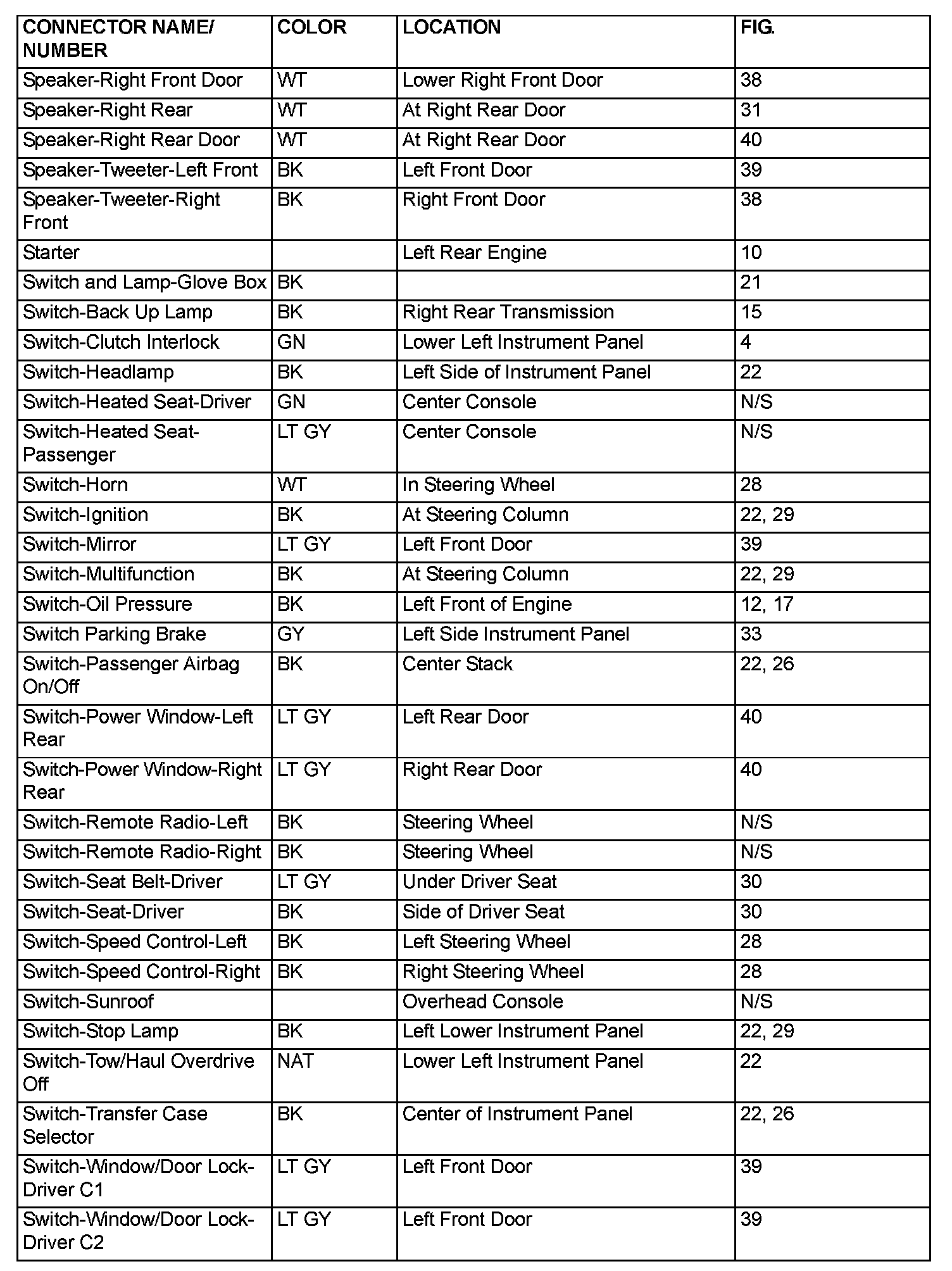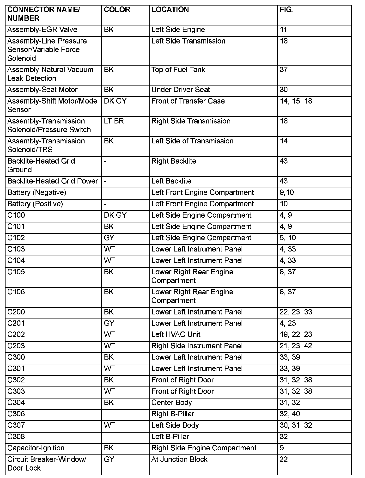 PLEASE NOTE:If a link on the index chart to a figure is not provided, that means that the connector and/or figure in question does NOT apply to the vehicle model selected.