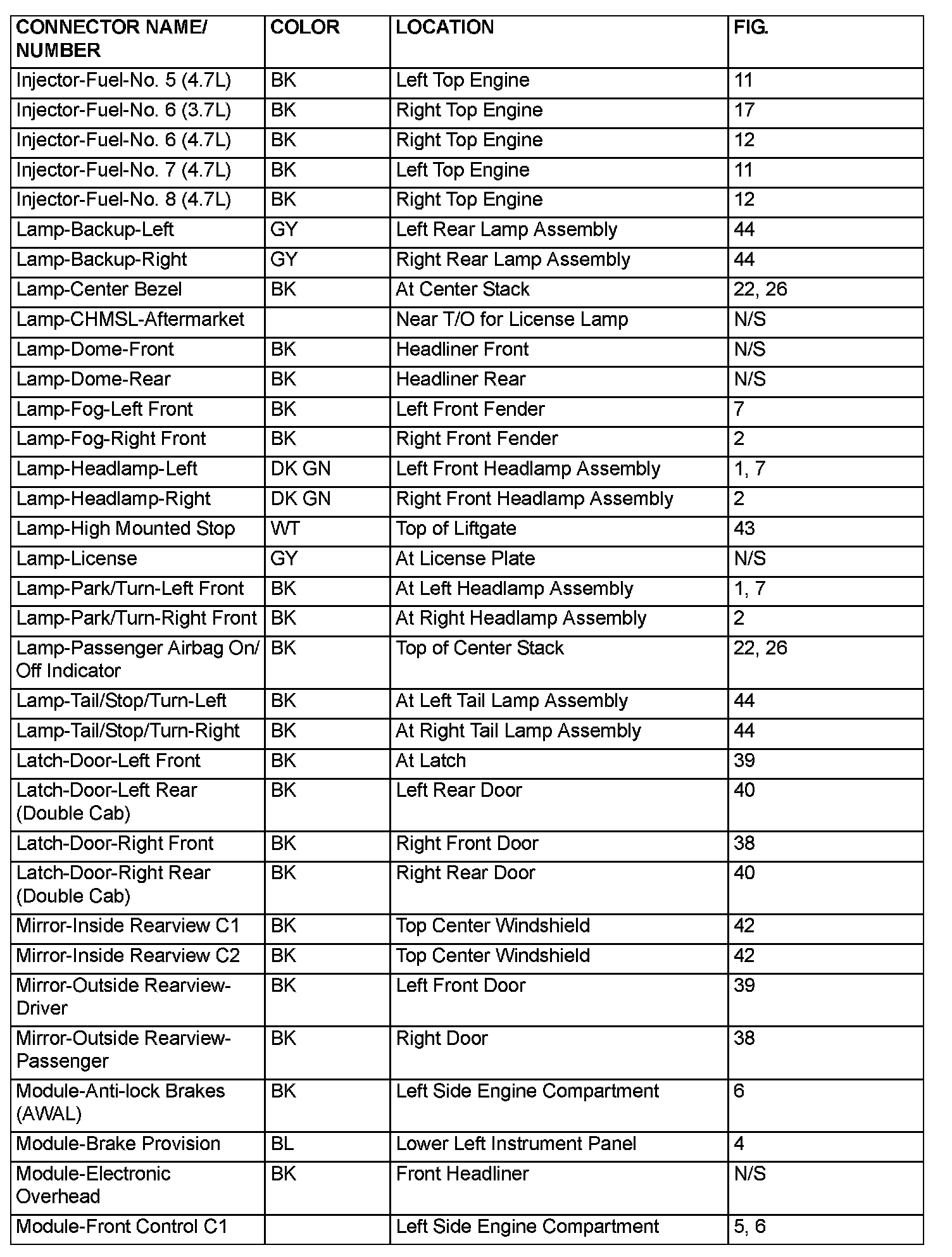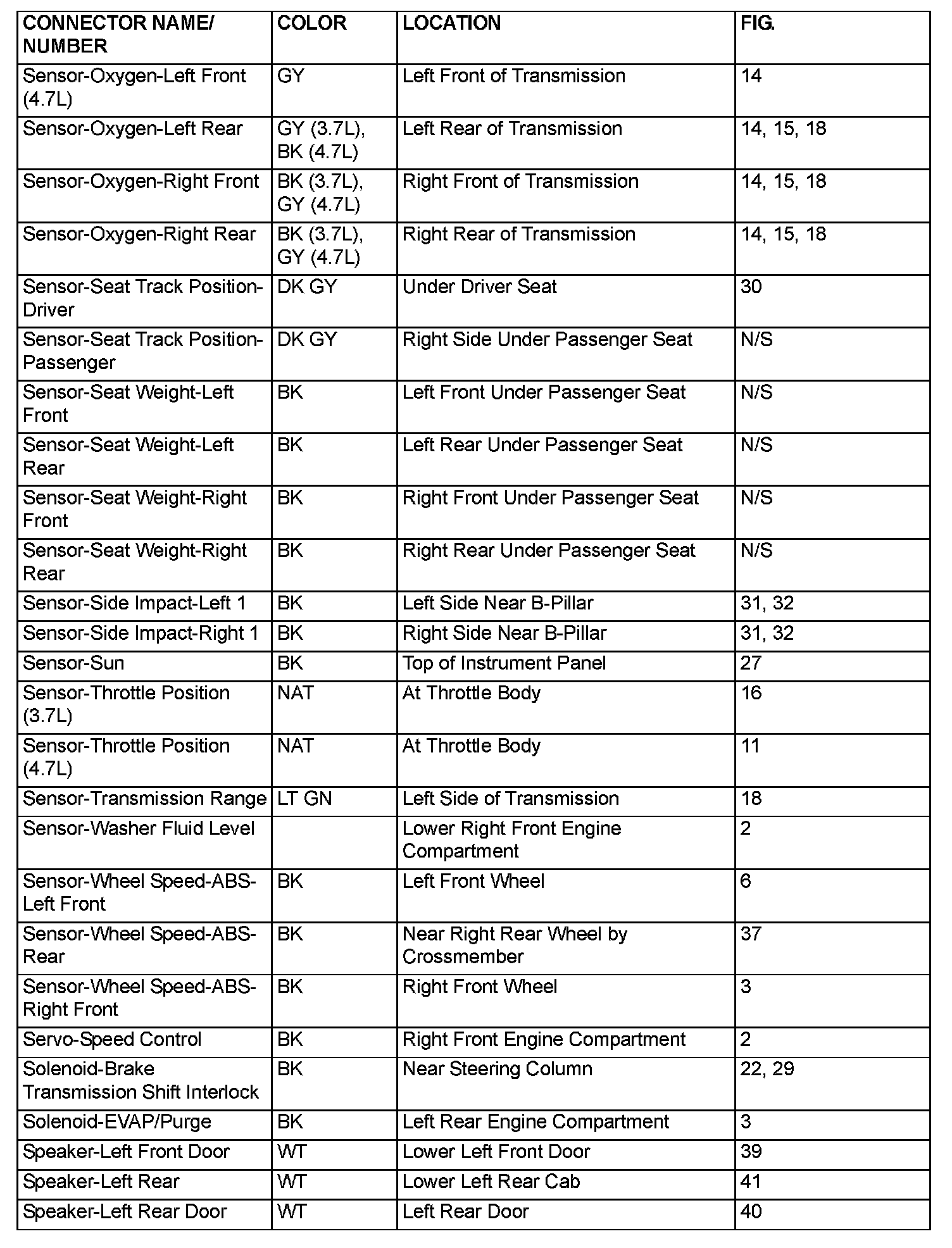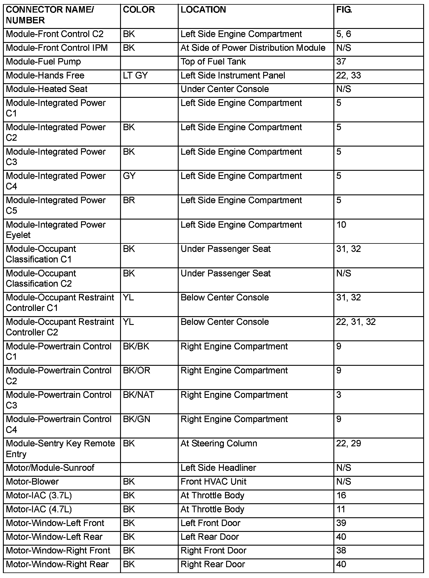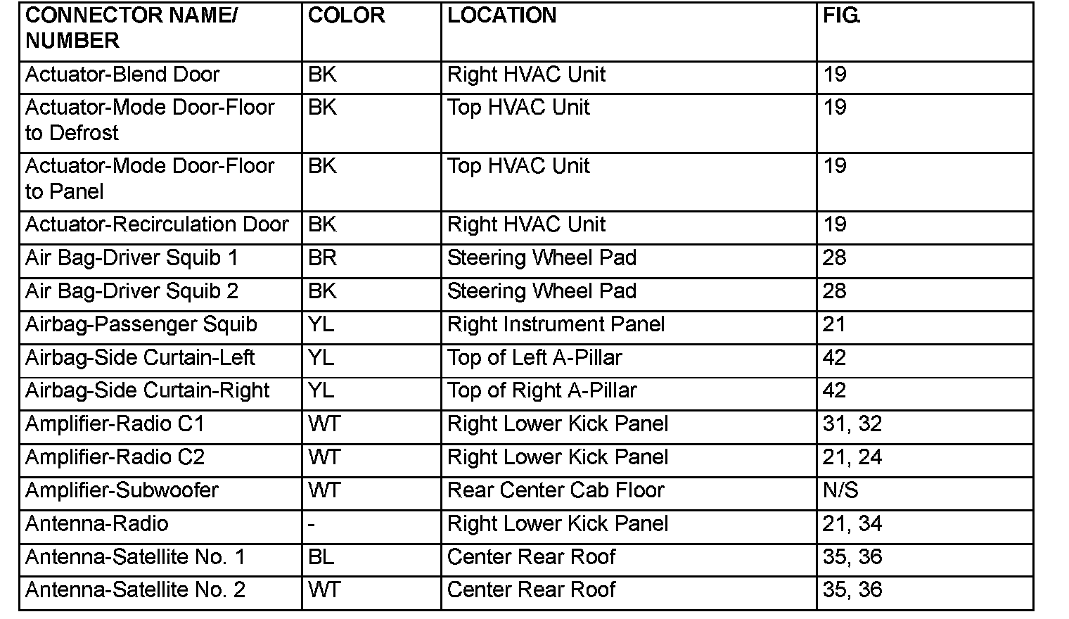 PLEASE NOTE:If a link on the index chart to a figure is not provided, that means that the connector and/or figure in question does NOT apply to the vehicle model selected.