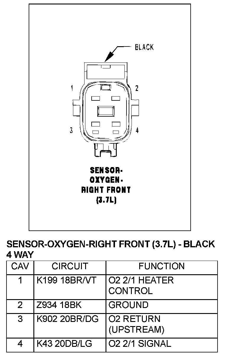 Sensor-Oxygen-Right Front (3.7L)-Black 4 Way:
